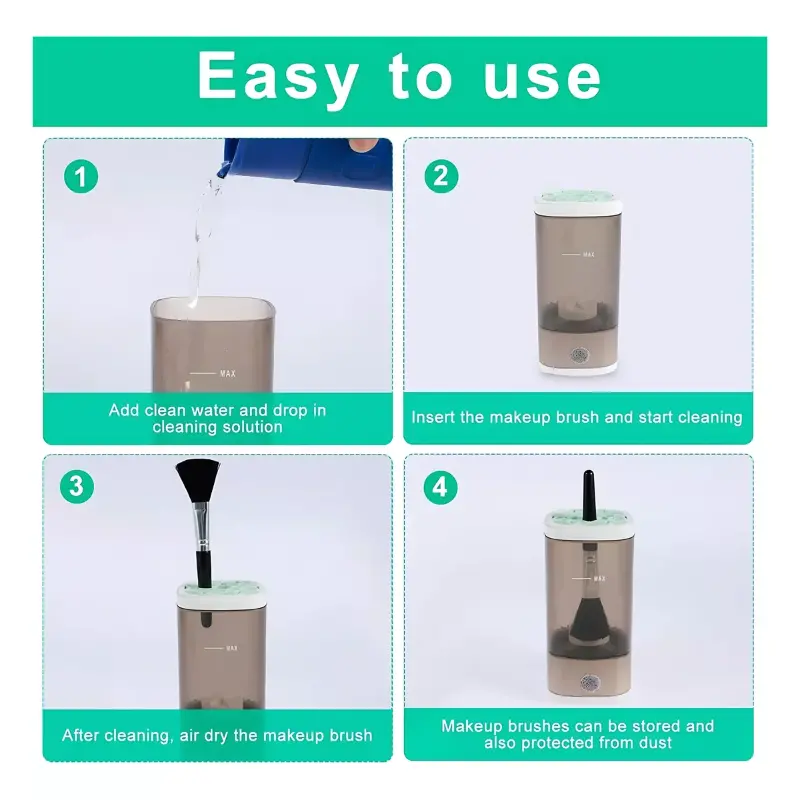 Nuestro limpiador de brochas de maquillaje eléctrico utiliza tecnología de limpieza avanzada para limpiar a fondo la mayoría de los tipos de cepillos de maquillaje en poco tiempo. Flujo de agua adecuado y diseño de cabezal de cepillo giratorio, el limpiador penetra profundamente en las cerdas para eliminar residuos cosméticos y bacterias difíciles de limpiar para garantizar la higiene y seguridad de tus cepillos.